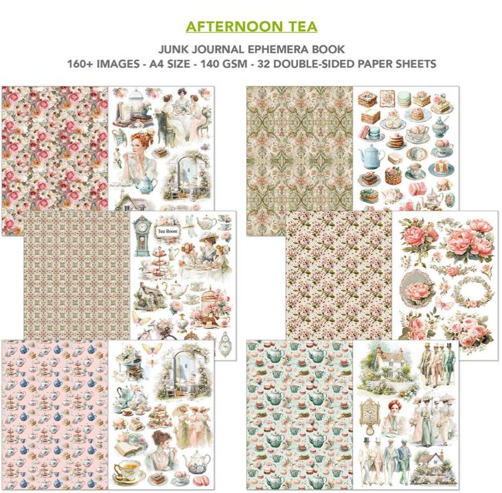 Ciao Bella - Junk Journal A4 Ephemera Book - Afternoon Tea 32pcs CBB020