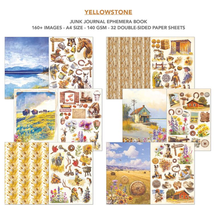 Ciao Bella - Junk Journal A4 Ephemera Book - Yellowstone 32pcs CBB022