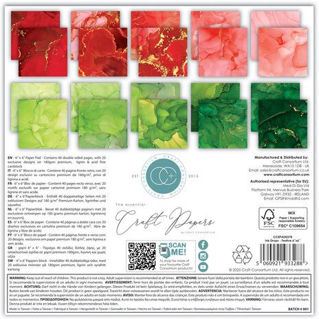 Craft Consortium - Paper Pad 6x6 - ink drops festive 40st dubbelsidiga papper, 20 designs