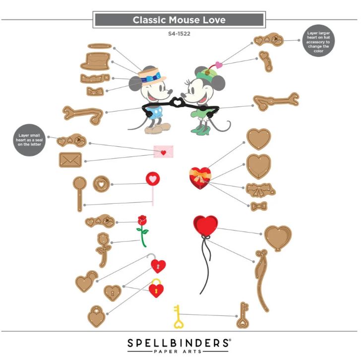 Classic Mouse Love Collection, designade för att fungera med S6-261 Steamboat Willie Duo-setet, innehåller setet med 22 tunna metallstansar tillbehör och en söt kärleksgest perfekt för vårt favoritmuspar! De kan hålla föremål som symboliserar kärlek och beundran eller till och med forma ett hjärta med sina händer... åh! Classic Mouse Love Collection är perfekt för Classic Mouse-fans! Vem kan motstå dessa söta kärleksuttryck? Samla dem alla!